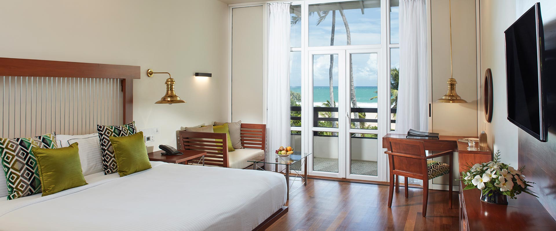 For our well-deserving guests, we offer the very best of stays on the coast of Sri Lanka. Roomy spaces covered in shades of sepia and pearly white emit a warm and welcoming aura. The colours of the interior perfectly complement the splendid balcony views of the great blue stretching out into the distance. A wonderful escape is ready and waiting for you to arrive and indulge in all its luxuries.