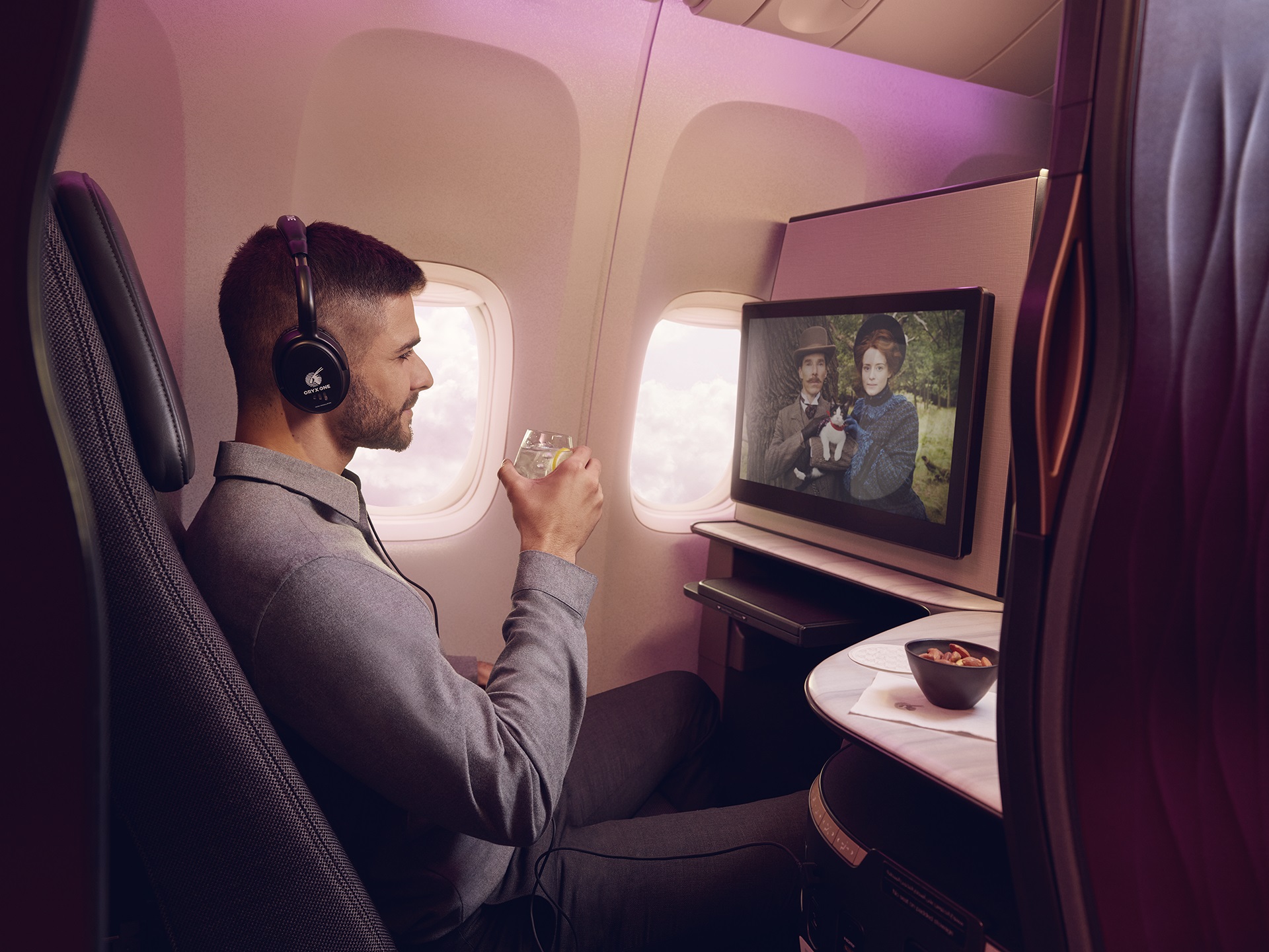 Qsuite, a patented Qatar Airways product, features the industry’s first-ever double bed in Business Class, as well as privacy panels that stow away, allowing passengers in adjoining seats to create their own private room, a first of its kind in the industry.