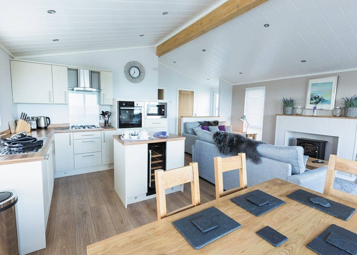 Superb, spacious and modern lodge. One master kingsize with luxury en-suite large shower and towel radiator. Two twin (beds can be linked to form super kingsize bed). Contemporary family bath with overhead shower. Open plan living area with sea views, dining area and modern fully equipped kitchen with dishwasher, wine cooler and French doors leading to large decked area with picnic table, barbecue area and sunken outdoor hot tub with sea views. No pets. Boasting breath-taking panoramic cliff-top views, some of the most dramatic coastal scenery in the UK and every chance of spotting pods of dolphins, Fishguard Bay Resort enjoys a truly unique setting in the magnificent Pembrokeshire Coast National Park. A haven of peace and tranquillity, ideally located for exploring this stunning part of Wales.
