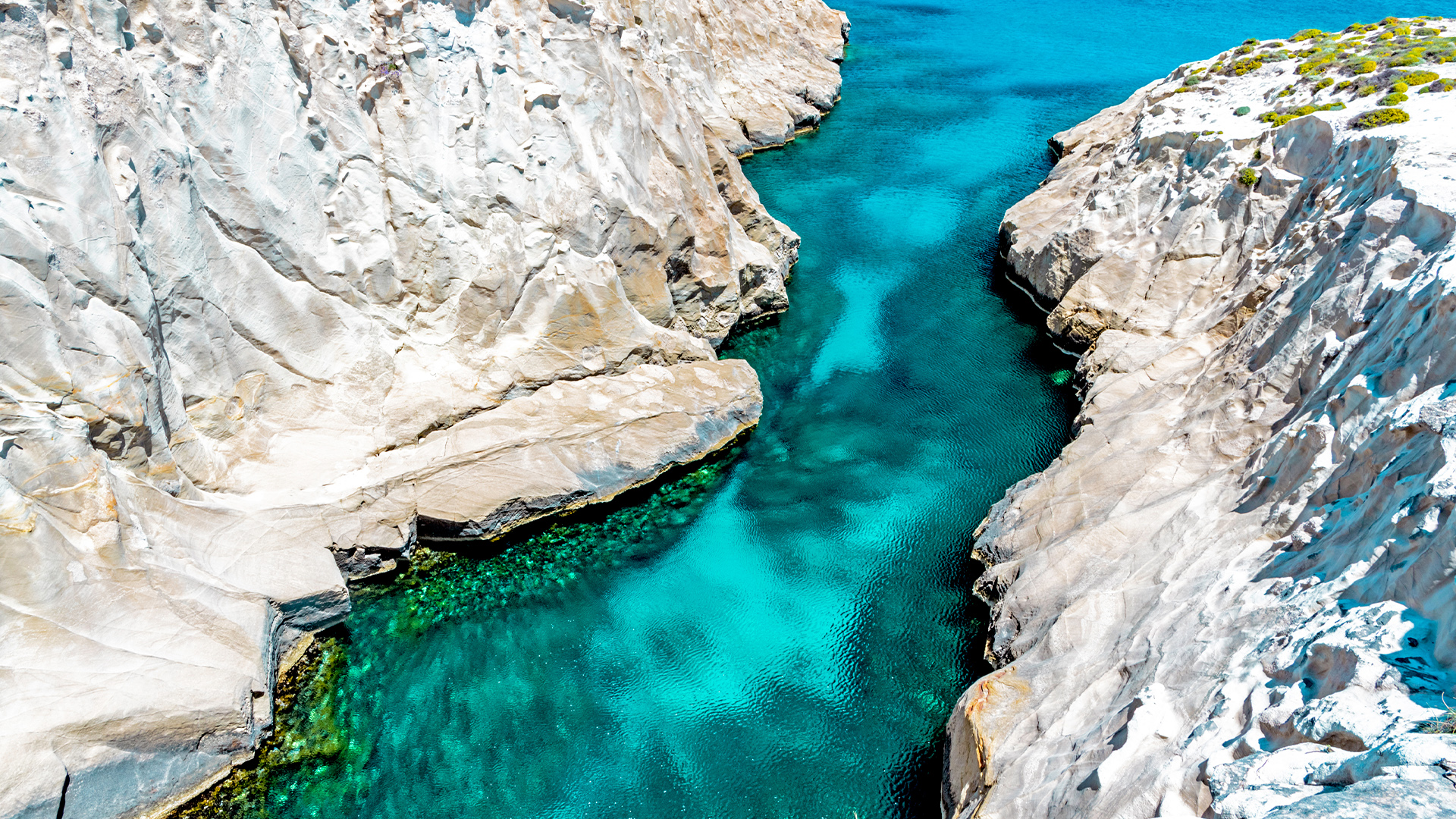 Milos - An island for adventurers, Milos’ volcanic sand beaches and the mind-blowing volcanic coastal formations are a sight to behold. The Rainbow-colored Klima Village is also a must visit, with two-story fishing houses each with their own unique colour, and two ancient acropolises to explore in the wider area nearby.